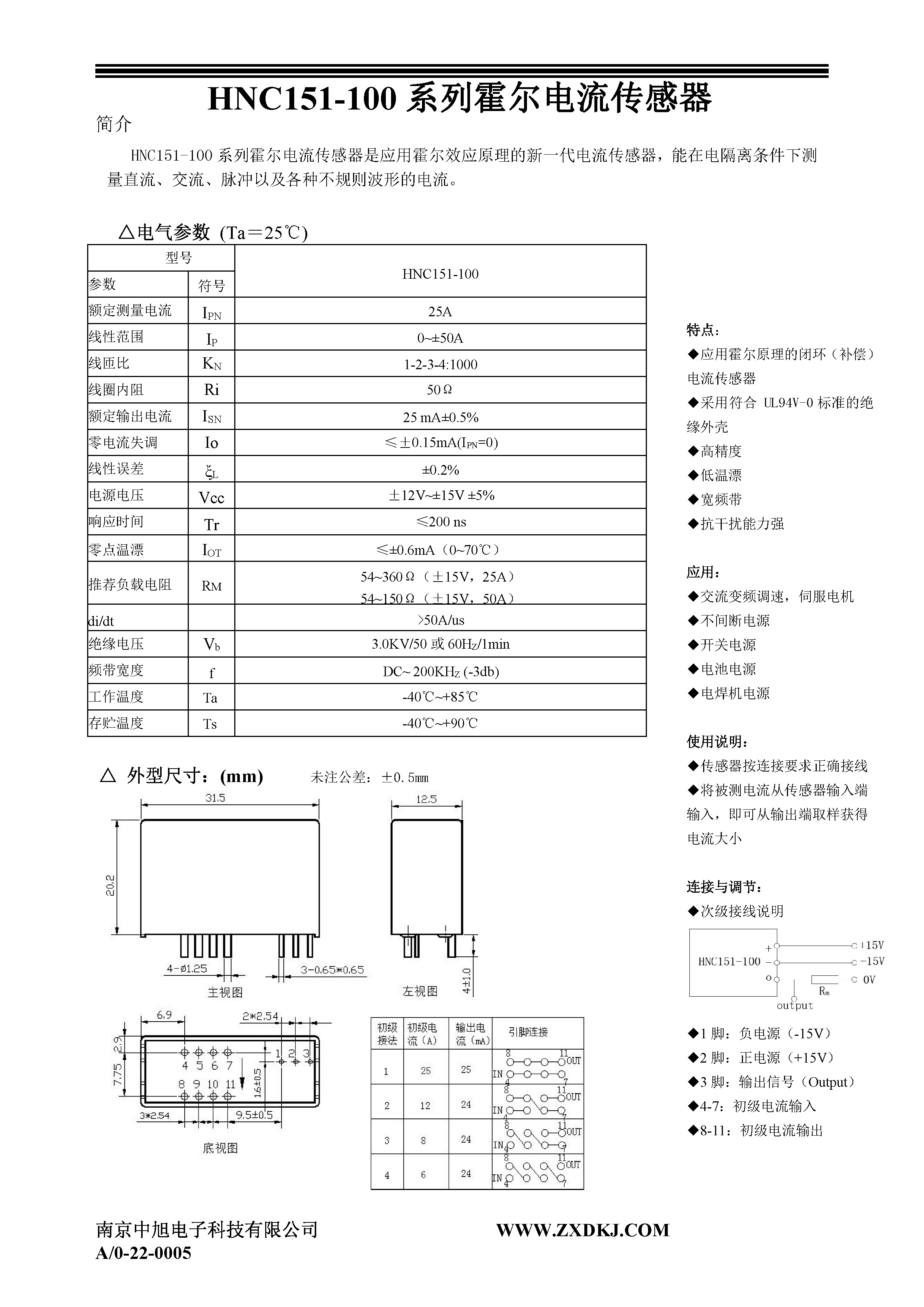 HNC151-100系列霍爾電流傳感器是應用霍爾效應原理的新一代電流傳感器,能在電隔離條件下測量直流、交流、脈沖以及各種不規(guī)則波形的電流。